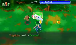 Bestow can also be used as part of a Contest Spectacular combination, with the user gaining an extra three appeal points if a certain move (Celebrate, Covet, Happy Hour or Wish) was used in the prior turn.