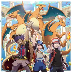 | Alternate artwork of Scottie, Bettie, and Pikachu | Key artwork by Ken Sugimori | Key artwork from Masters EX | Artwork of Bettie with Red, Leon, and their Charizard |
