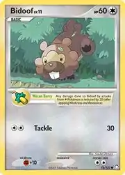 Bidoof (Japanese: ビッパ Bippa) is a Colorless-type Basic Pokémon card. It is part of the Mysterious Treasures expansion.