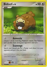 Bidoof (Japanese: ビッパ Bippa) is a Colorless-type Basic Pokémon card. It was first released as part of the Diamond & Pearl expansion.
