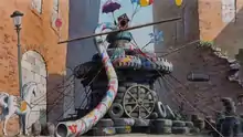 There are many apartment buildings around here as well as a skyscraper. Notable monuments include Magikarp and Tauros statues and a fountain.