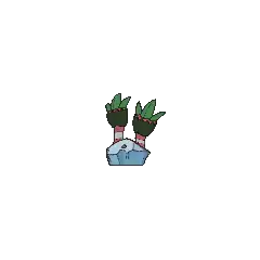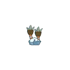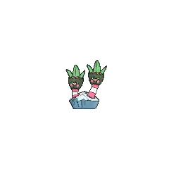 Binacle is always found as a pair living in a single gray rock and needed to cooperate with each other in order to survive. It moves by stretching and contracting its bodies and yanking the rock along in a hopping motion. The pair has a tendency of squabbling with one another. When they do, one of them will move and find a different rock with a different Binacle to live alongside with. Binacle eats seaweed that washes up on the shoreline.