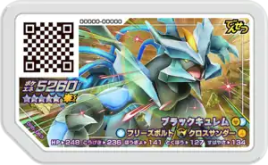 Black Kyurem (Japanese: ブラックキュレム Black Kyurem) is a Grade 5 Pokémon Ga-Olé disk. It is part of the fifth Grand Rush set.