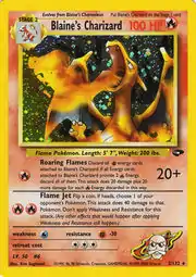 Blaine's Charizard (Japanese: カツラのリザードン Katsura's Lizardon) is a Fire-type Stage 2 Pokémon card. It is part of the Gym Challenge expansion.