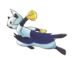 Dewott is Blake's first Pokémon. He first encountered him at the International Police Headquarters, where he was one of the Pokémon offered to Blake, who had no Pokémon at the time. He was first seen when Blake was breaking up with Yancy. He was later used to defeat Hugh's Trapinch, earning his Trainer a Pokédex. According to Blake, Dewott takes the time to polish his scalchops after every battle. He is level 45, has a Serious nature, and his Characteristic is "highly persistent". The insert of Volume 54 identifies Dewott as the "Blade" of Blake's team. | ||