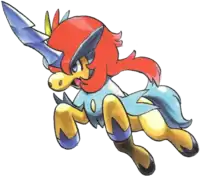 Kelden (Japanese: ケルデマル Keldemaru) is Blake's third known Pokémon. Blake first encountered it in the wild at the Pledge Grove after Whitley's Foongus, Foongy, lured it with Sweet Scent. In Legendary Tornadus, it was revealed that Blake managed to get it to join his team. It is level 40 and has a Serious nature. The insert of Volume 54 identifies Kelden as the "Sword" of Blake's team. | ||