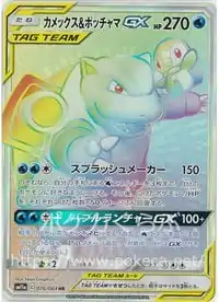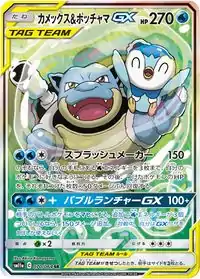 Blastoise & Piplup (Japanese: カメックス&ポッチャマGX Kamex & PochamaGX) is a Water-type Basic Tag Team Pokémon-GX card. It is part of the Cosmic Eclipse expansion.