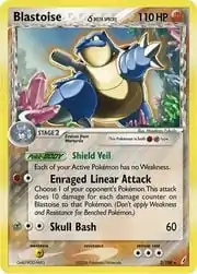 Blastoise δ (Japanese: カメックス δ Kamex δ) is a dual-type Fighting/Metal Stage 2 Pokémon card. It is part of the EX Crystal Guardians expansion.
