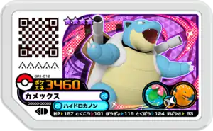 Blastoise (Japanese: カメックス Kamex) is a Grade 4 Pokémon Ga-Olé disk. It is part of the first Grand Rush set.