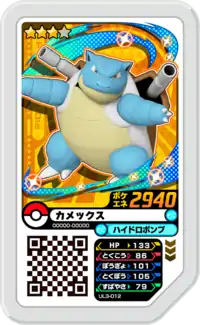 Blastoise (Japanese: カメックス Kamex) is a Grade 3 Pokémon Ga-Olé disk. It is part of the third Ultra Legend set.
