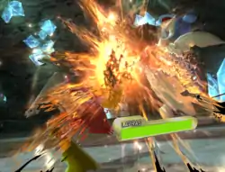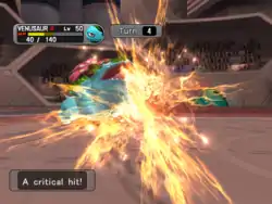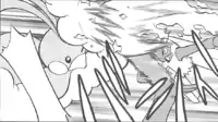 Genesect's foot is surrounded by a bright orange flame and it kicks the opponent. | ||