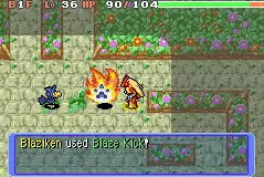 In Red Rescue Team and Blue Rescue Team and Explorers of Time, Darkness and Sky, Blaze Kick is a move with 16 base power, 88% accuracy and 13PP. The user attacks enemy in front of them, even if they are frozen (thawing them out in the process), possibly inflicting a burn. This move has an increased critical-hit ratio.