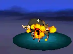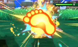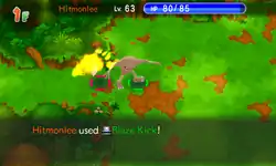 One of Hitmonlee's feet becomes surrounded in red-orange flames and he kicks the opponent. On occasion, this will burn the opponent. | ||