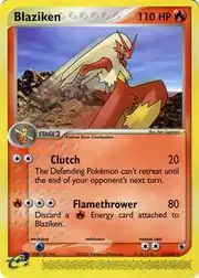 Blaziken (Japanese: バシャーモ Bursyamo) is a Fire-type Stage 2 Pokémon card. It is part of the EX Ruby & Sapphire expansion.