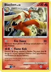 Fire Dance's Japanese name is that of Fiery Dance, a move later introduced in the Generation V Pokémon games that Blaziken cannot learn. This card's Pokédex entry comes from Pokémon Diamond and Pearl.