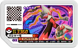 Blaziken (Japanese: バシャーモ Bursyamo) is a Grade 4 Pokémon Ga-Olé disk. It is part of the fourth Ultra Legend set.
