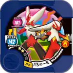 Blaziken (Japanese: バシャーモ Bursyamo) is a Super-class Tretta. It is part of the Great Gathering! Legendary! Mirage! Mega Evolution! set.