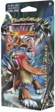 Release the red-hot power of the Legendary Pokémon Entei! This slow-building deck combines the power of Fire and Grass types to fan a small flame into a raging volcano. Burn your way to victory with the Blazing Volcano theme deck!