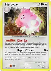 Blissey (Japanese: ハピナス Happinas) is a Colorless-type Stage 1 Pokémon card. It is part of the Mysterious Treasures expansion.