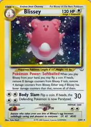 Blissey (Japanese: ハピナス Happinas) is a Colorless-type Stage 1 Pokémon card. It is part of the Neo Revelation expansion.