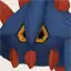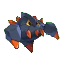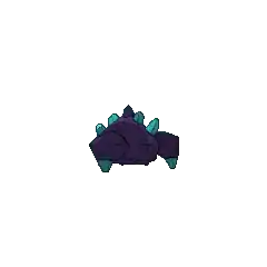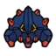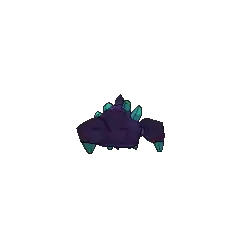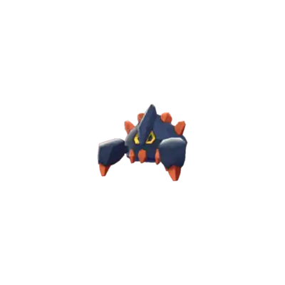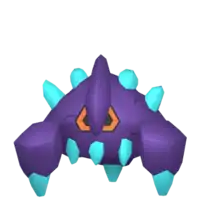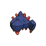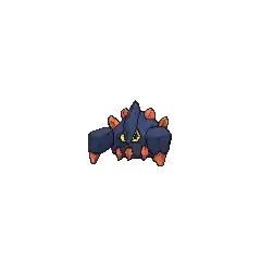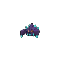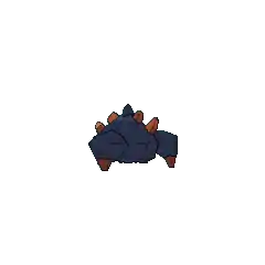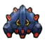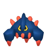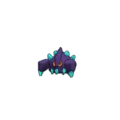 Boldore is a blue, rock-like Pokémon with an array of red crystals on its back and front, and a spine protruding from between its yellow ears. Rocky chunks at its sides comprise pincer-like limbs, tipped with red crystals similar to the ones on its back. Its orange crystals are the hardened form of its endlessly leaking energy.