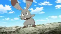 In The Tiny Caretaker!, Bunnelby, along with Bonnie, Dedenne, and the Tyrunt that Bonnie recently befriended, was captured by Team Rocket in a bid to claim Tyrunt as their own. Listening to Bonnie's commands, Bunnelby was able to help Bonnie and the others escape the trio multiple times, but was eventually held down by Gourgeist's Leech Seed and got defeated by her Seed Bomb. | ||