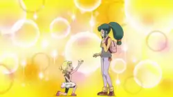 After watching Ash at the Lumiose Conference, Bonnie was shocked when Squishy fled after the stadium was attacked by weird vines. In the following episode, despite the protests of Blaziken Mask, she went after Squishy along with Clemont and Serena. After she finally senses exactly where Squishy was, she was amazed when it transformed into a Zygarde to confront the one under Team Flare's control. In Coming Apart at the Dreams!, She watched as Squishy and Z2 were battling each other throughout Lumiose City until the former was subdued by the latter. She sensed Squishy's pain and fell to her knees and after she stood back up, she was rescued by Blaziken Mask's Mega Blaziken when one of the giant roots almost attacked her. Despite Blaziken Mask's attempt to comfort her, she couldn't help but scream out as she kept feeling Squishy's pain.