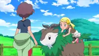 Then, in A Shockingly Cheeky Friendship!, Bonnie met the Dedenne from the previous episode when he stole the food she was trying to feed to Pikachu and Fletchling. She begged Clemont to capture him for her, but Dedenne forced the group to chase him in several holes in the ground, which caused Dedenne and Pikachu to get lost together. Eventually, Pikachu and Dedenne returned, but a previous encounter with Team Rocket left Dedenne exhausted to the point of fainting, much to Bonnie's horror. After Dedenne was rejuvenated by one of Clemont's inventions, he bonded with Clemont and helped defeat Team Rocket. Afterward, Dedenne allowed Clemont to capture him so that Bonnie could keep him in her satchel.
