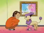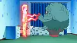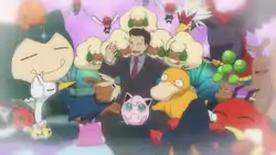 This fantasy was completely removed from the dub, presumably due to the extremely suggestive nature of the shot where the Pokémon are rubbing up against Giovanni. This was the second boss fantasy after EP250 that was not seen in the English dub. |