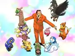 | A Staravia is Born! | Bird Pokémon | The boss is flying in the air, sitting on a chair strapped to a bunch of Flying-type Pokémon. | ![]() |