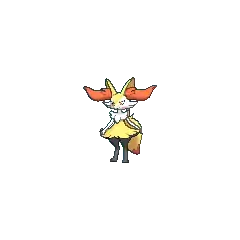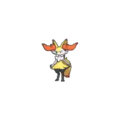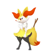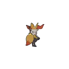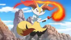 Braixen always keeps a stick in its tail, which it sets alight using friction from its bushy tail fur. The flame from the lit twig is used for both attack and communication.