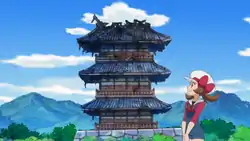 The Burned Tower later made a brief cameo in An Egg Scramble! during Lyra's presentation of Johto at the Johto Festival.