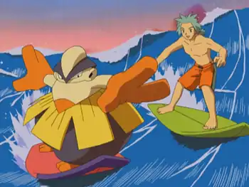 Hariyama was first seen as a Makuhita in Brave the Wave, where it was surfing with Brawly, something they are both interested in. While they were surfing, Makuhita lost its footing and fell over but recovered quickly when they got back to shore. When Team Rocket arrived to catch Pikachu, Makuhita swam very quickly on its surfboard and caught up to Team Rocket, tackling them and rescuing Pikachu in the process.