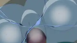 | When Pelipper tries to escape from the Team Rocket trio, who wants to get strong Pokémon from the Rocket Prize Master in order to escape from inside a Wailord, Pelipper flies towards the camera and hits it. | |