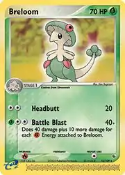 Breloom (Japanese: キノガッサ Kinogassa) is a Grass-type Stage 1 Pokémon card. It is part of the EX Ruby & Sapphire expansion.