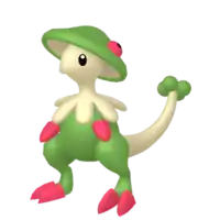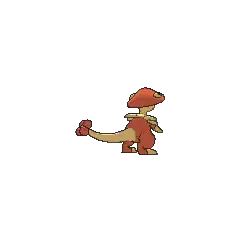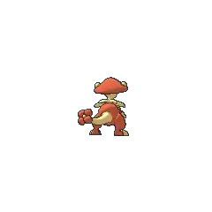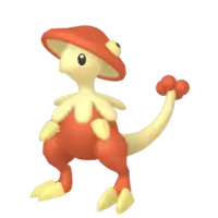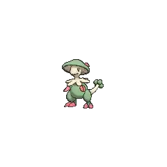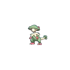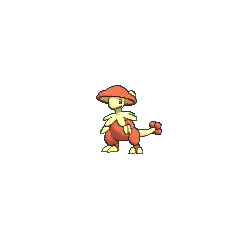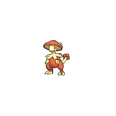 Breloom can stretch its short arms to deliver fast punches. Additionally, it has light, springy footwork that allows it to get close to opponents. Another way it closes in on opponents is by incapacitating them with spores released from the holes in its cap. Its technique is equal to that of professional boxers. It prefers to live in tropical forests, where it feeds on decomposing trees and plants.
