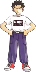 Brock (Japanese: タケシ Takeshi) is the Gym Leader of Pewter City's Gym, known officially as the Pewter Gym. He gives the Boulder Badge to Trainers who defeat him in battle. He specializes in Rock-type Pokémon.