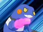 Croagunk was first used in a battle by Brock in Leave It To Brocko!, battling Seviper. The two had a brief clash of moves before Croagunk repeatedly used Brick Break while Seviper used Wrap on him, eventually ending in a draw.