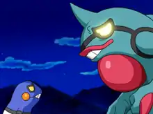 In The Needs of the Three!, Croagunk once again battled with Saturn's Toxicroak. He quickly gets distracted and is hit by Sludge Bomb, so Brock recalls him. Later on the group attack Team Galactic again, with Croagunk leaping off of Gliscor to land a direct hit on the head with Brick Break to Toxicroak, knocking it out and giving Croagunk his first victory over it. He then assists in freeing the lake guardians and fighting Dialga and Palkia.