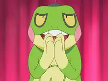 In All Dressed Up With Somewhere To Go!, Brock entered Croagunk in the Pokémon Dress-Up Contest, an event organized by the Pokémon Fan Club where Pokémon try to imitate other Pokémon. Throughout the competition, Croagunk replicated the behavior of a Politoed and his impression of the Frog Pokémon was so convincing that the panel of judges—formed by Mr. Sukizo, Nurse Joy, and Officer Jenny—deemed him the winner. As a result, Brock was given the Pokémon Egg prize.