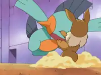 In Turning Over a Nuzleaf!, Mudkip, along with Pikachu, Treecko, Corphish, Torchic, Silcoon, and Lotad, were separated from the group after a Loudred attacked them. Mudkip and Pikachu attempted to lead the group of Pokémon as they searched for their Trainers. However, a group of Nuzleaf began to capture the Pokémon one by one after Corphish damaged the leaf on one of the Nuzleaf's heads. Mudkip and Pikachu were not captured and worked to save the others until Ash and the group arrived.