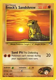 Brock's Sandshrew (Japanese: タケシのサンド Takeshi's Sand) is a Fighting-type Basic Pokémon card. It is part of the Gym Heroes expansion.