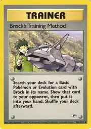Brock's Training Method (Japanese: タケシの育て方 Takeshi's Upbringing) is a Trainer card. It was first released as part of the Gym Heroes expansion.