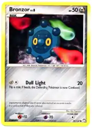 Bronzor (Japanese: ドーミラー Dohmirror) is a Metal-type Basic Pokémon card. It is part of the Mysterious Treasures expansion.