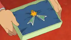 Ash, Dawn, and Brock visited the town's Contest Hall to watch Zoey participating in the local Pokémon Contest. They arrived there late and were only able to see the final round, where Zoey faced off against a Coordinator named Rebecca. Using her Glameow against Rebecca's Shuckle, Zoey had trouble dealing with the Mold Pokémon's Withdraw. Eventually, Glameow managed to make its opponent come out of its shell with Shadow Claw and knock it out with Iron Tail. As a result, the Contest Judges ruled Battle Off for Shuckle, thus Zoey was declared the winner of the match.
