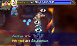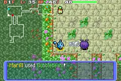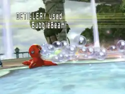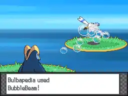 In Red Rescue Team and Blue Rescue Team, Bubblebeam has 6 base power, 19 PP and 100% accuracy. The attack travels up to 10 tiles away and hits the first Pokémon it encounters, ally or enemy, possibly lowering its Movement Speed by one level.