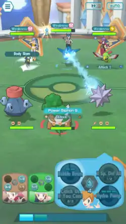 Brionne shoots a stream of blue bubbles from in front of its nose at the opponent. | ||