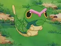 Later, Bucky used his Caterpie in a battle against a wild Dunsparce, in an attempt to catch it. Caterpie used its String Shot and Tackle to successfully weaken it. Caterpie's known moves are Tackle and String Shot. | ||