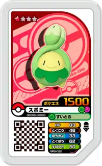 Budew (Japanese: スボミー Subomie) is a Grade 1 Pokémon Ga-Olé disk. It is part of the third Grand Rush set.
