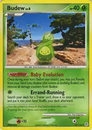 Budew (Japanese: スボミー Subomie) is a Grass-type Basic Pokémon card. It is part of the Diamond & Pearl expansion.